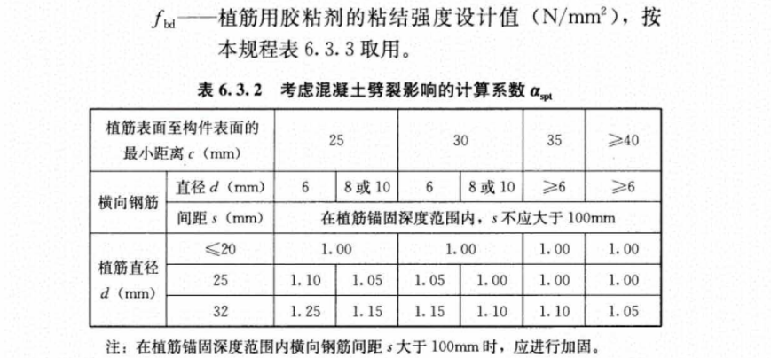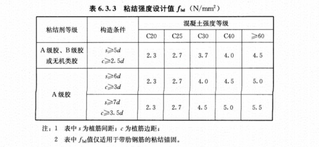 4、fbd 為植筋膠的粘結(jié)強(qiáng)度設(shè)計(jì)值。