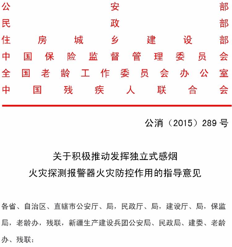【獨立式煙感】火災(zāi)探測報警器六部委支持文件