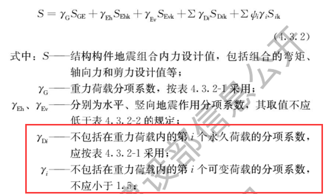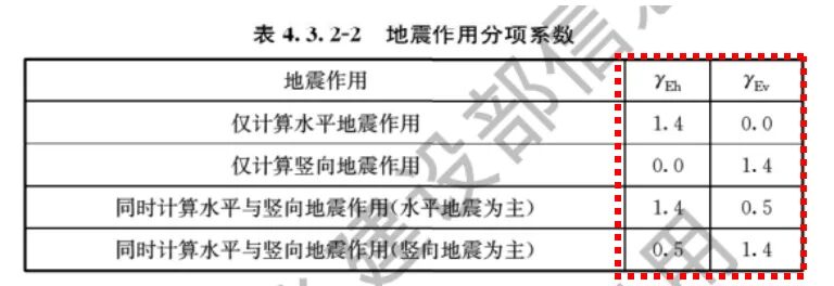 《建筑與市政工程抗震通用規(guī)范》4.3.2條,對地震組合下的重力荷載分項系數(shù)和地震分項系數(shù)均進行了放大調(diào)整。