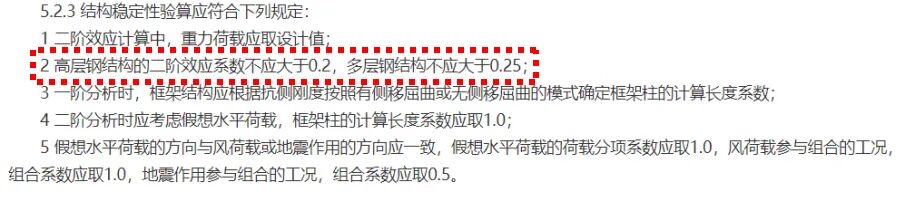 《鋼結(jié)構(gòu)通用規(guī)范》5.2.3-2,明確了高層鋼結(jié)構(gòu)和多層鋼結(jié)構(gòu)的二階效應(yīng)系數(shù)的限值
