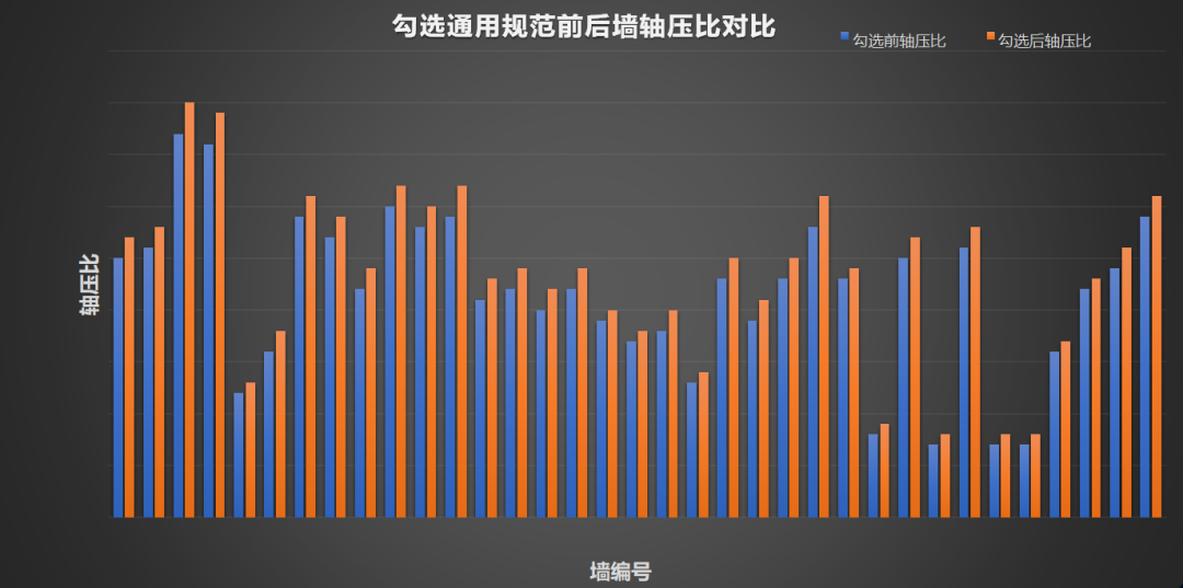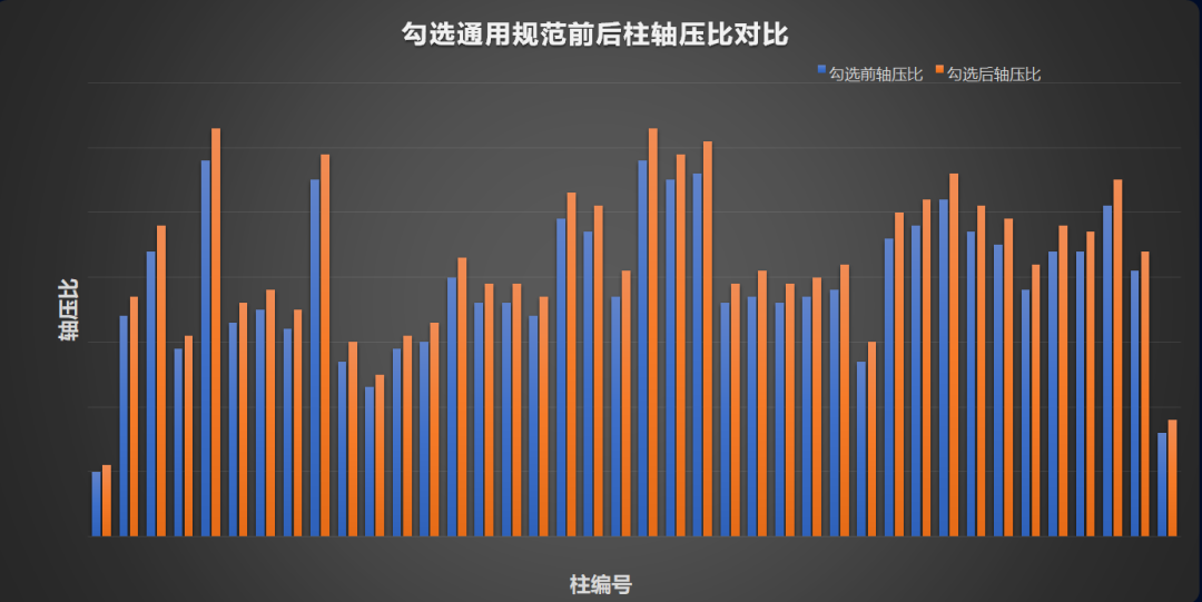 由于軸壓比的變化,會影響混凝土柱及鋼柱強柱弱梁的驗算,引起柱的最小配箍特征值以及廠房鋼柱的長細比限值等的變化。
