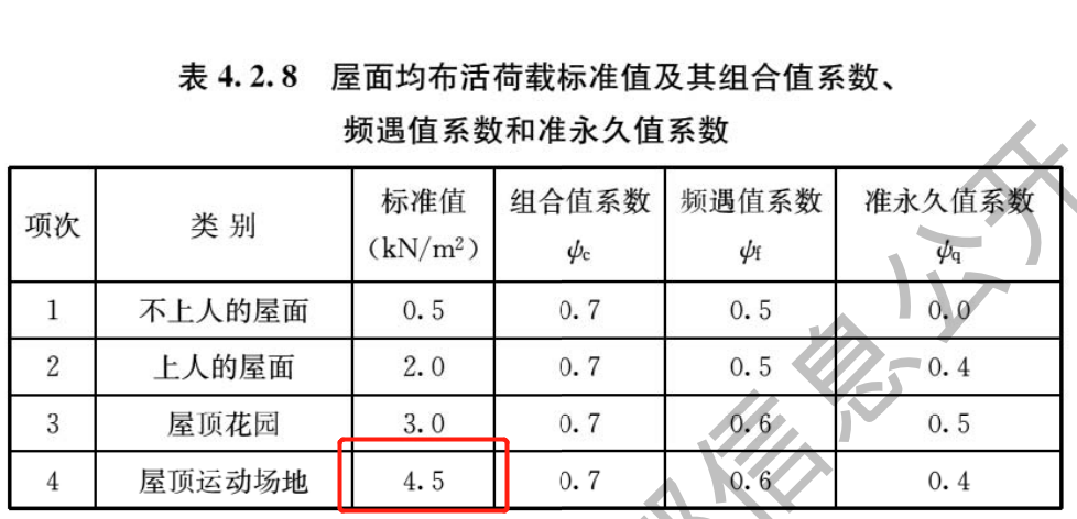 屋頂運動場地的標準值由原來的3.0kN/m2改為4.5kN/m2