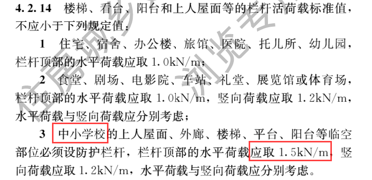 1.3 對中小學校欄桿頂部水平承載力的要求