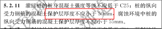 灌注樁的縱向受力鋼筋的混凝土保護層厚度不應(yīng)小于50mm。