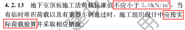1.2 地下室頂板施工荷載標準值的要求