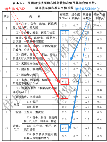 《工程結(jié)構(gòu)通用規(guī)范》4.2.2條中民用建筑樓面均布荷載標準值及系數(shù)均有變化。