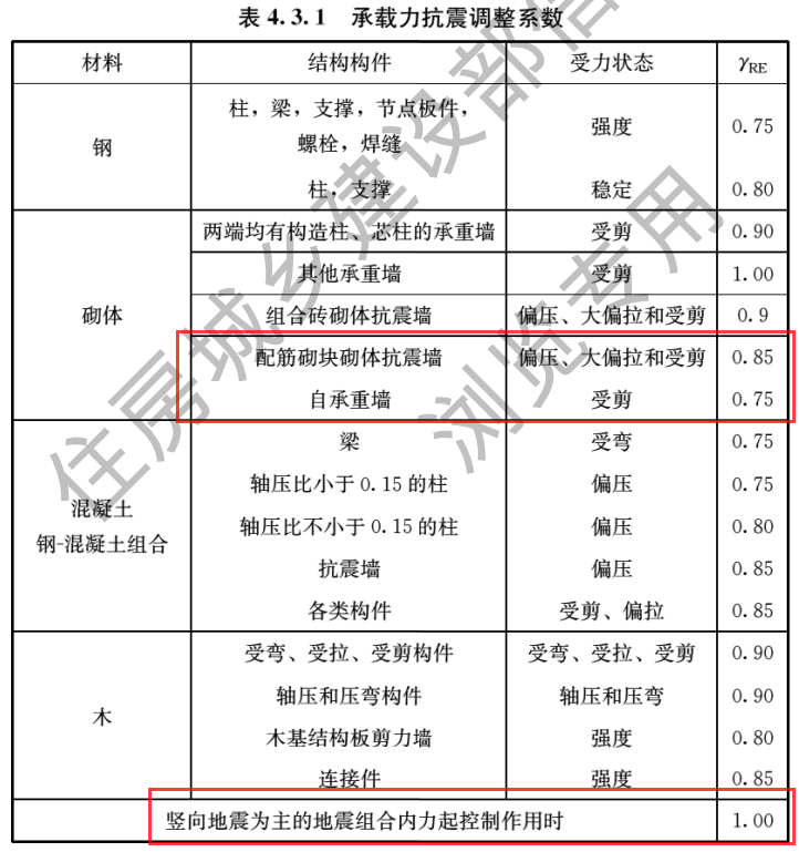 《建筑與市政工程抗震通用規(guī)范》4.3.1條,承載力抗震調(diào)整系數(shù)γRE的調(diào)整。