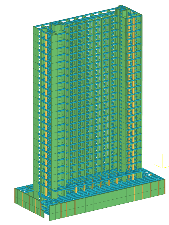 由于地震作用組合下的分項系數(shù)的變大,會引起地震組合控制的混凝土配筋、鋼結(jié)構(gòu)應(yīng)力比等放大,同時也會引起墻、柱的軸壓比、墻、柱、梁的剪壓比的放大;